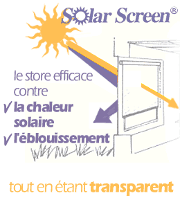 Les Ets Howard vous apportent la réponse tant attendue à vos problèmes de chaleur solaire, et d'éblouissement. Avec les stores métallisés transparents SOLAR SCREEN, les rayons infrarouges "tapent" sur la face métallisée des stores, rebondissent, et repassent à travers vos vitrages. |